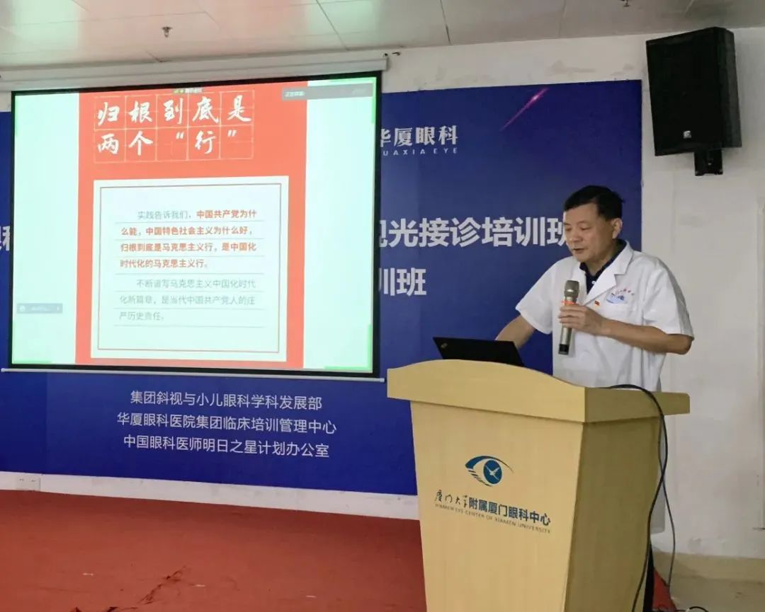 在華廈集團和廈門眼科中心的學習討論會上, 大家以“不忘初心”為紅線,系統(tǒng)學習了二十大精神。“不忘初心,牢記使命”這是新時代中國共產(chǎn)黨人對人民的承諾,這是走過100年的中國共產(chǎn)黨對歷史的回答。堅持人民至上是貫穿習近平新時代中國特色社會主義思想的根本政治立場,全面、深入貫徹黨的二十大精神,就要始終堅持以人民為中心的發(fā)展思想。大家認為,作為眼科集團和