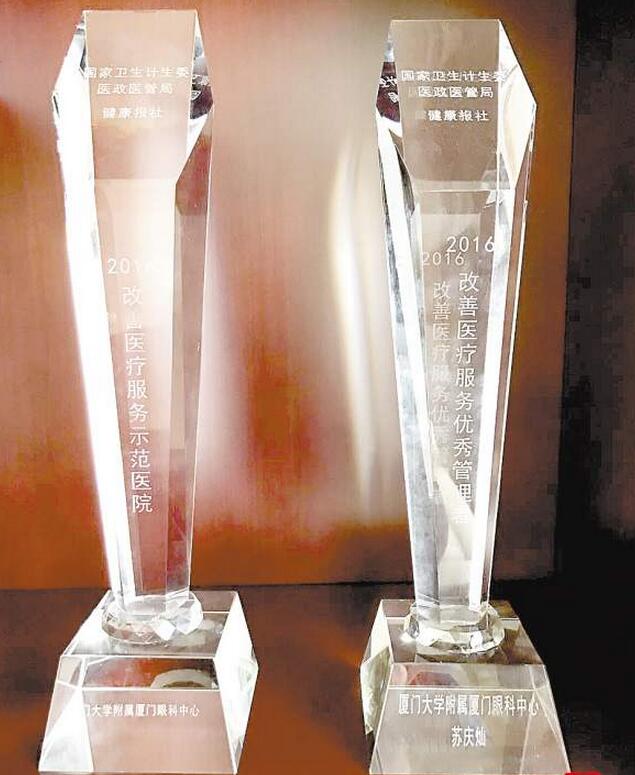 國家衛(wèi)計委和健康報頒發(fā)給廈門眼科中心的獎杯。