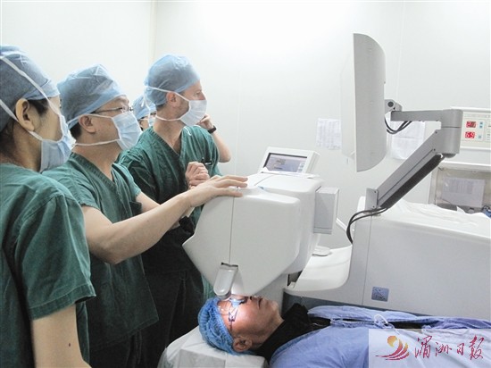 張廣斌院長(zhǎng)為患者實(shí)施飛秒激光白內(nèi)障手術(shù)