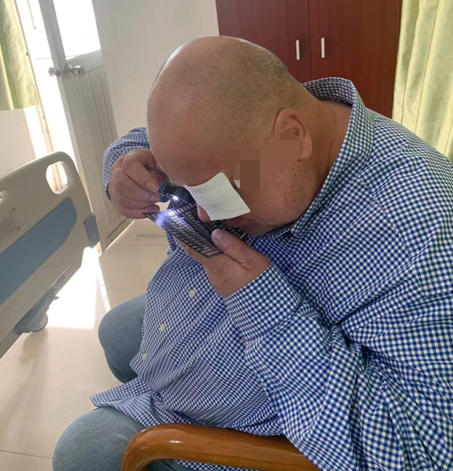 兩年前,克里斯的右眼看東西開始模糊,接著他感覺眼里的物體慢慢變小,直到幾乎看不到東西。而質(zhì)檢工作本身對視力要求就較高,這對克里斯來說,無疑是巨大的工作障礙。他經(jīng)常在外工作時,需要把樣品拍照帶回家放大來慢慢查看,非常地不便。后面到醫(yī)院檢查,原來是患上了白內(nèi)障,需要手術(shù)。
