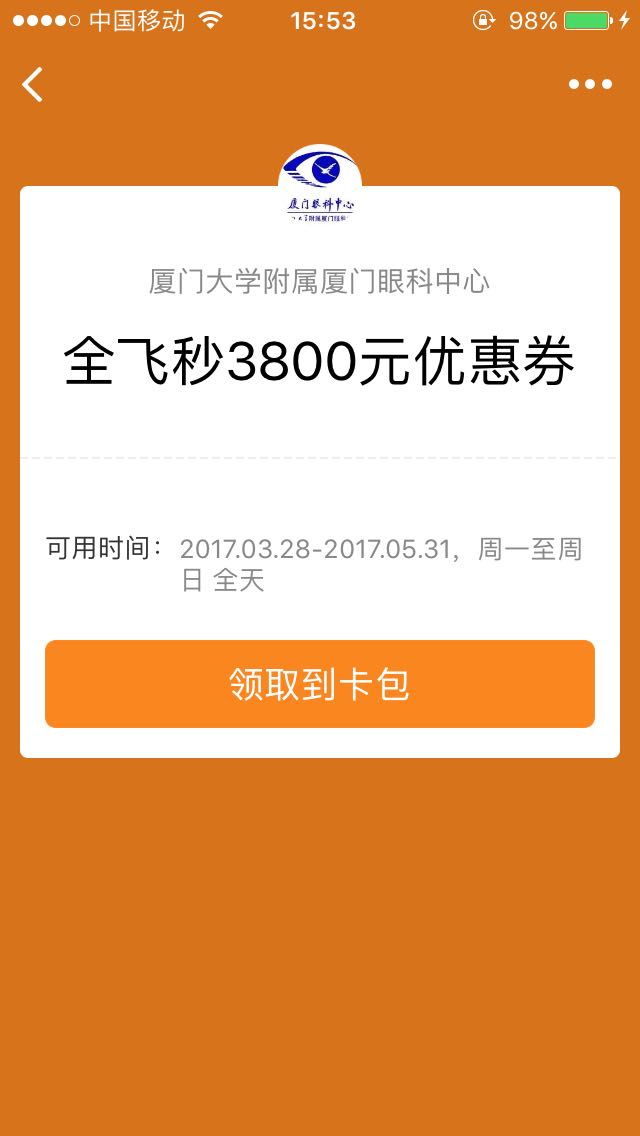 全飛秒激光近視手術(shù)電子優(yōu)惠券領(lǐng)取方式
