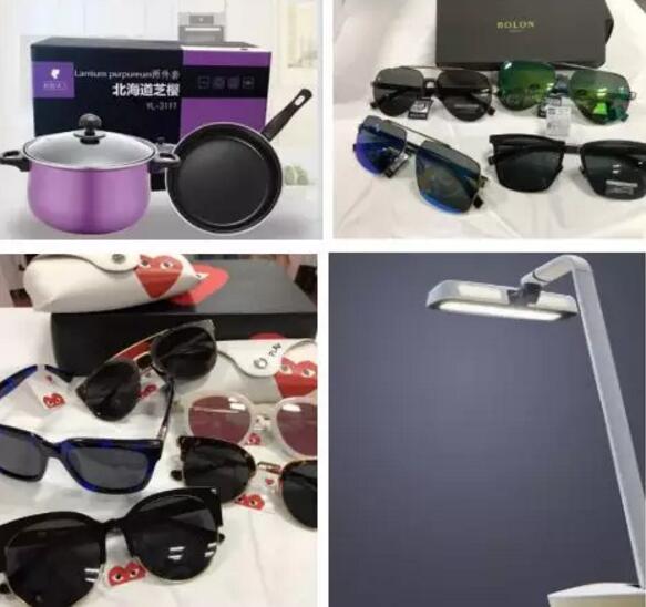 價(jià)值1980元的警察太陽(yáng)鏡、價(jià)值598元的豪華鍋具、價(jià)值798元的暴龍?zhí)?yáng)鏡、價(jià)值680元的李維斯手表、價(jià)值398元的艾尼雅太陽(yáng)鏡和川久保玲太陽(yáng)鏡、價(jià)值188元的魔法化妝鏡、價(jià)值168元護(hù)眼臺(tái)燈、價(jià)值150元U盤、價(jià)值108元進(jìn)口高檔毛巾……