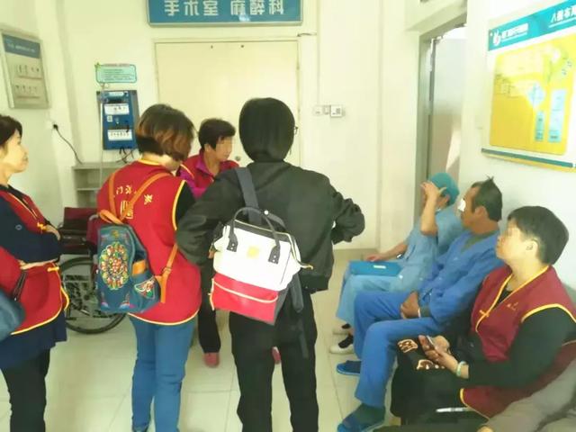 義工在手術(shù)室門口安慰即將手術(shù)的患者