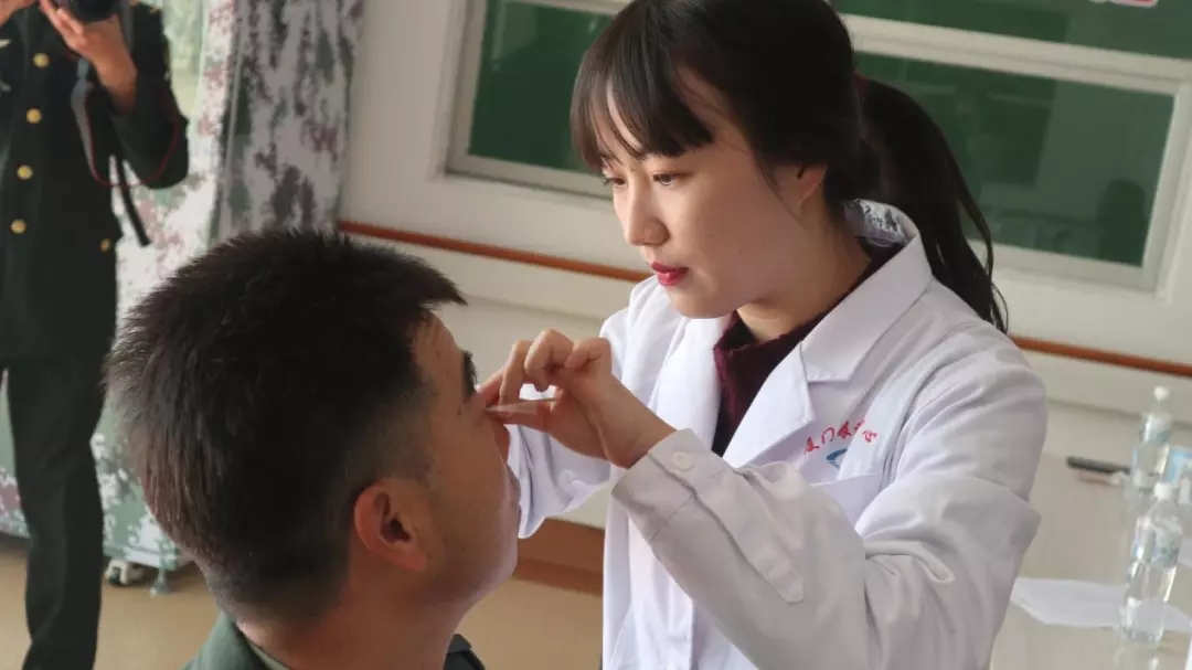 吳護(hù)平副院長為戰(zhàn)士們做眼部檢查