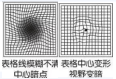 由于黃斑疾病的不可逆性,及早診治很關(guān)鍵。怎么發(fā)現(xiàn)病情呢?有一個(gè)自我平常檢測(cè)簡(jiǎn)便的方法,就是用阿姆斯勒方格表自測(cè):