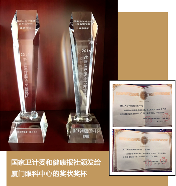 經(jīng)過20多年的跨越發(fā)展,廈門眼科中心已成為醫(yī)療體制改革的成功典范,先后榮獲國(guó)家衛(wèi)生部頒布的“2011醫(yī)院改革創(chuàng)新獎(jiǎng)”、“國(guó)家臨床重點(diǎn)專科”、“中國(guó)醫(yī)院科技影響力排行榜”眼科學(xué)領(lǐng)域前十、學(xué)術(shù)影響力前十。2017年1月,被國(guó)家衛(wèi)計(jì)委和健康報(bào)社評(píng)為“2016國(guó)家改善醫(yī)療服務(wù)示范醫(yī)院”。中心本著“一切以病人為中心”的原則,并邁出集團(tuán)化發(fā)展步伐,已在北上廣等多個(gè)省市擁有50多家醫(yī)院。