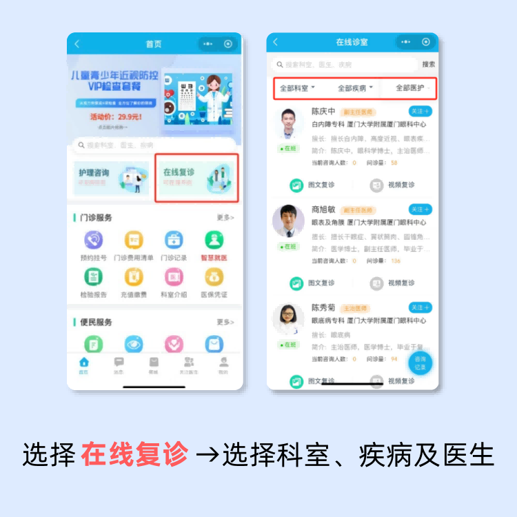 為方便市民群眾就醫(yī)就診,滿足人民群眾多層次多樣化的眼健康需求,6月1日起,廈門(mén)眼科中心還將開(kāi)展為期一個(gè)月的“互聯(lián)網(wǎng)醫(yī)院復(fù)診免費(fèi)活動(dòng)”,患者可通過(guò)互聯(lián)網(wǎng)醫(yī)院實(shí)現(xiàn)在線復(fù)診咨詢、線上開(kāi)立檢查檢驗(yàn)項(xiàng)目及預(yù)約等服務(wù),減少院內(nèi)排隊(duì)時(shí)間,提升就診體驗(yàn)。