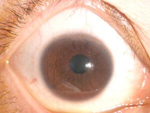 王女士回家后趕緊滴了眼藥水,未想第二天右眼疼痛更加明顯,已無法正常睜眼,視力也降到只有眼前手動。這下王女士慌了神,決定還是到正規(guī)??漆t(yī)院看病為好,經(jīng)人介紹,王女士來到廈門眼科中心找到修陽暉博士就診。經(jīng)過詳細的檢查后,修陽暉博士發(fā)現(xiàn)王女士患上了嚴重的角膜炎,中央?yún)^(qū)角膜已大部分受綠膿桿菌感染及浸潤。