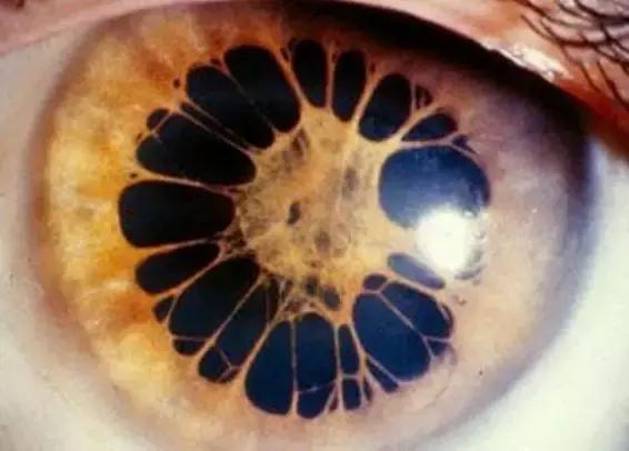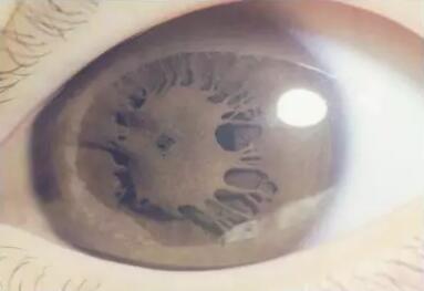 當(dāng)我在裂隙燈下看到上面的圖片時,馬上明白虹膜識別門禁系統(tǒng)為什么會報錯。我的視線快速劃過病歷上的信息:女性,21歲,視力:右眼0.2,左眼0.4!