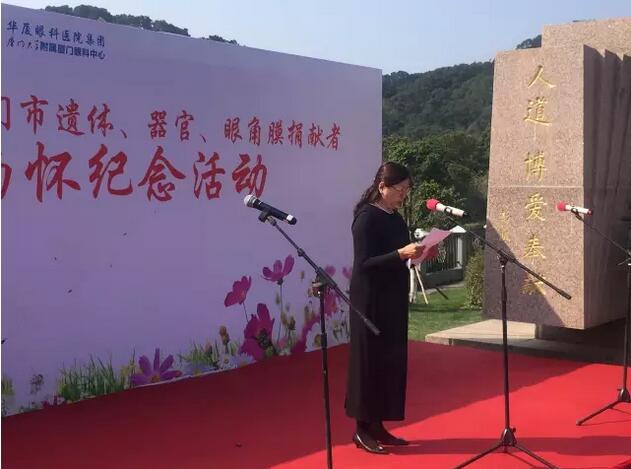 廈門大學(xué)附屬?gòu)B門眼科中心是福建省眼角膜捐獻(xiàn)指定的接收機(jī)構(gòu)。廈門大學(xué)附屬?gòu)B門眼科中心黨委書記陳逸恬在緬懷儀式上致辭,表達(dá)對(duì)生命的理性思考,對(duì)捐獻(xiàn)者偉大人格的崇敬之情。同時(shí)希望“人道、博愛、奉獻(xiàn)”的紅十字精神越來(lái)越被廣大愛心市民所接受和推崇,也希望更多的角膜盲患者能重獲光明,開啟新的生活。