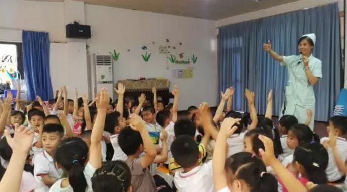 在廈門大學(xué)附屬廈門眼科中心屈光中心護(hù)士長陳美珠帶領(lǐng)下, 5名護(hù)理人員走進(jìn)廈門市警備區(qū)幼兒園,為123名可愛活潑的孩子送去護(hù)眼健康科普知識講座及視力檢查等活動。