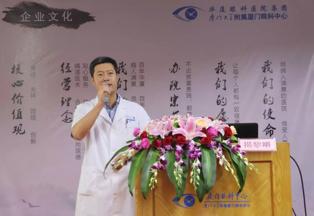 活動(dòng)現(xiàn)場邀請(qǐng)到了廈門眼科中心屈光手術(shù)中心科執(zhí)行主任——揭黎明主任醫(yī)師為前來參加活動(dòng)的近視朋友們分享了近視激光手術(shù)的發(fā)展及當(dāng)前世界主流的手術(shù)技術(shù)。