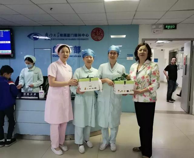 5月12日上午,廈門大學附屬廈門眼科中心工會主席陳逸恬、護理部主任許春麗及華廈眼科集團護理管理中心洪清配業(yè)務(wù)副院長一行專程前往各科室,慰問正在臨床一線辛勤工作著的護士,為大家送上節(jié)日蛋糕,送上節(jié)日的問候和祝福。