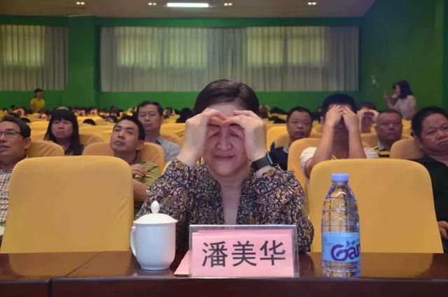 潘美華教授與現(xiàn)場學(xué)生共同做眼保健操