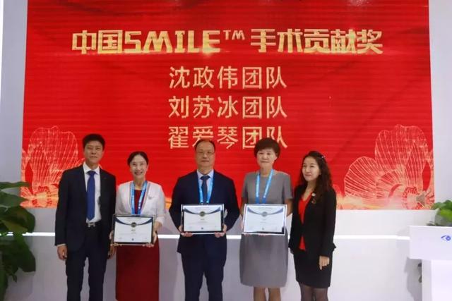 ▲沈政偉團(tuán)隊(duì)、劉蘇冰團(tuán)隊(duì)、翟愛琴團(tuán)隊(duì)獲頒“手術(shù)貢獻(xiàn)獎(jiǎng)”