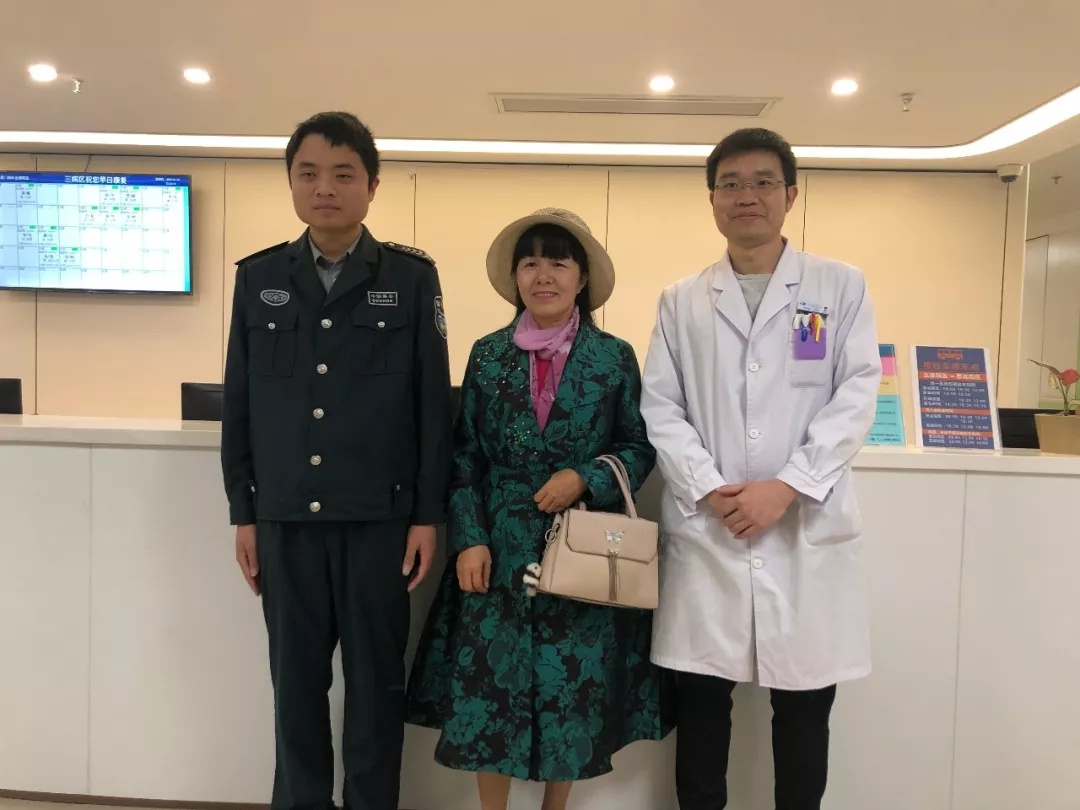 9日下午,故事里的主人公張瓊花女士特地從泉州趕回廈門,向廈門大學附屬廈門眼科中心保安部巡邏崗保安萬志豪、眼外傷??评詈2ú┦勘硎靖兄x。