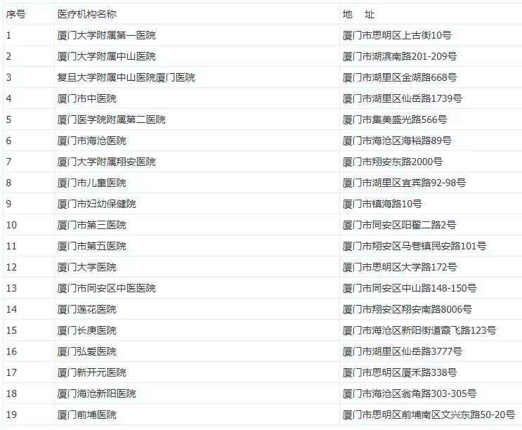 附:廈門市醫(yī)療機構發(fā)熱門診目錄