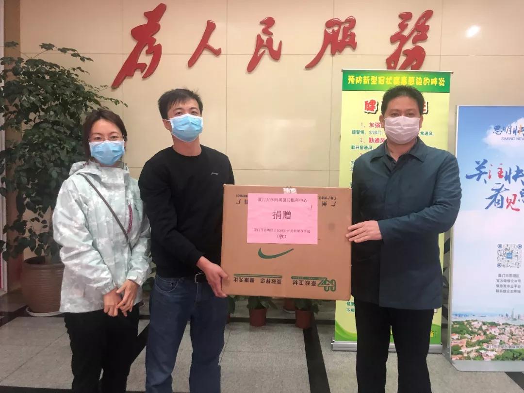 “主任您好,你們辛苦了。這是我們廈門大學(xué)附屬?gòu)B門眼科中心捐贈(zèng)的護(hù)目鏡,請(qǐng)您代表貴街道接收。相信我們會(huì)戰(zhàn)勝疫情,迎來(lái)美好的春天!”