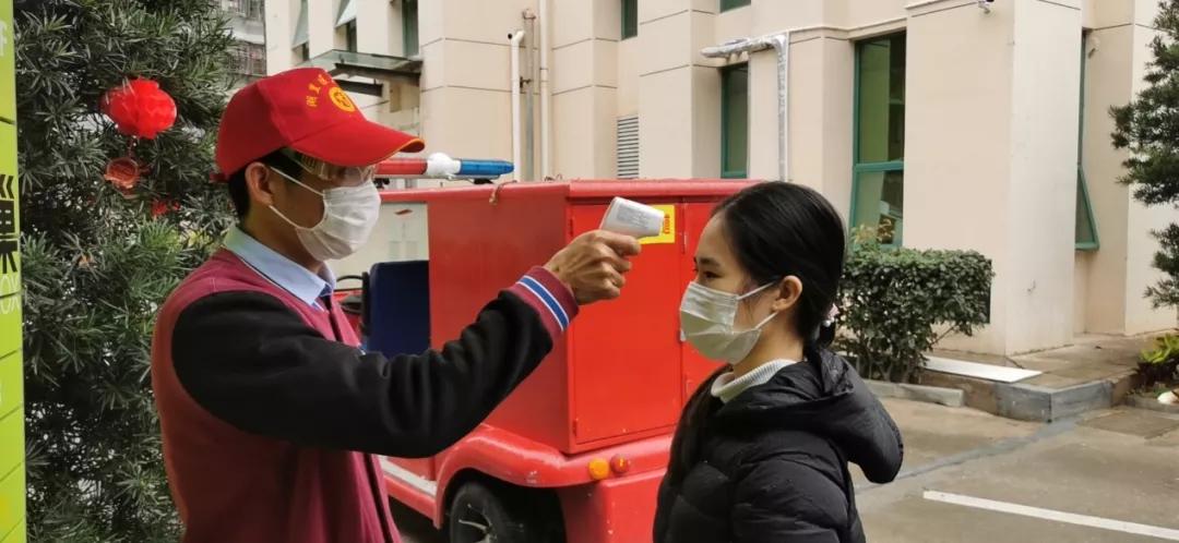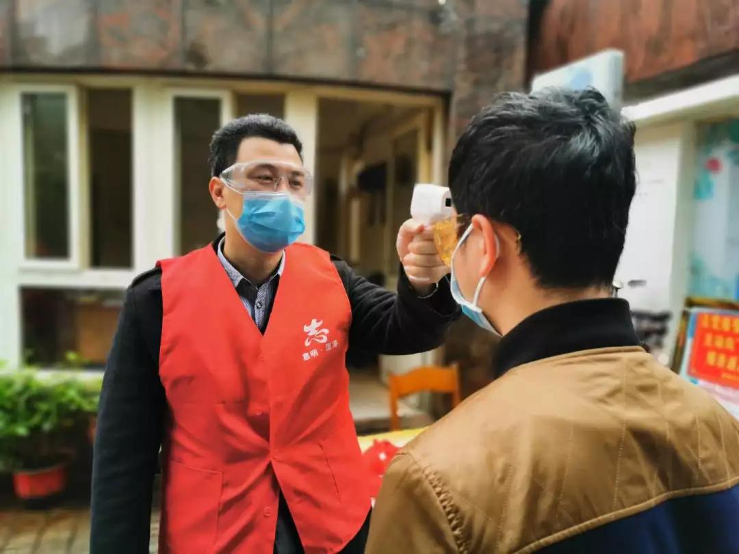 社區(qū)志愿者們戴上廈門眼科中心捐贈(zèng)的護(hù)目鏡為居民測(cè)量體溫