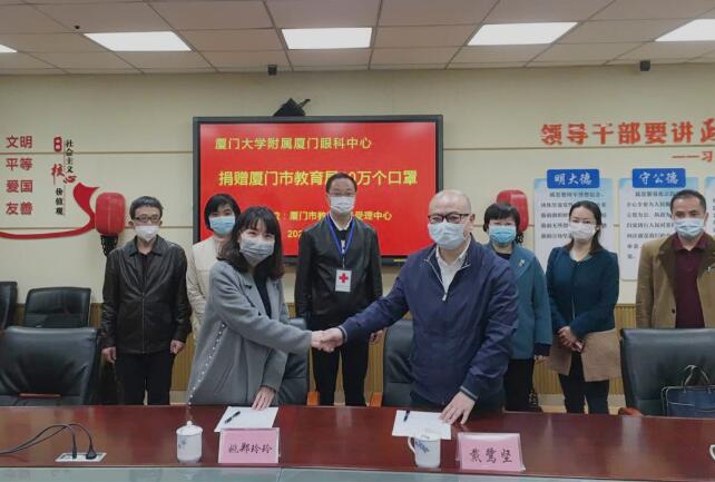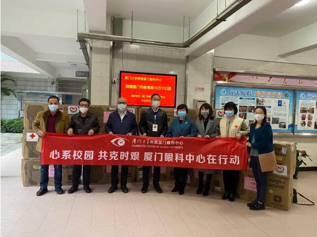 近日,廈門大學(xué)附屬廈門眼科中心向廈門市紅十字會捐贈了20萬只口罩。其中15萬只定向捐贈給廈門市教育局及各區(qū)教育局,用于教育系統(tǒng)疫情防控一線。