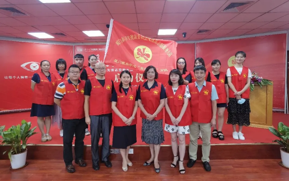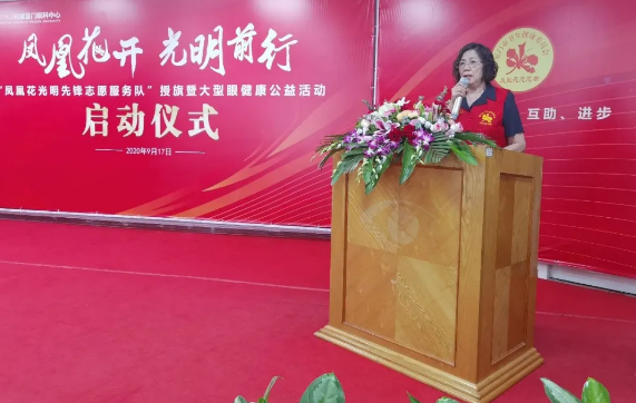 廈門市衛(wèi)生健康委員會機(jī)關(guān)黨委專職副書記、直屬黨委副書記王萍為廈門眼科中心“鳳凰花光明先鋒志愿服務(wù)隊(duì)”授旗,并宣布廈門眼科中心鳳凰花光明先鋒志愿服務(wù)隊(duì)正式成立。