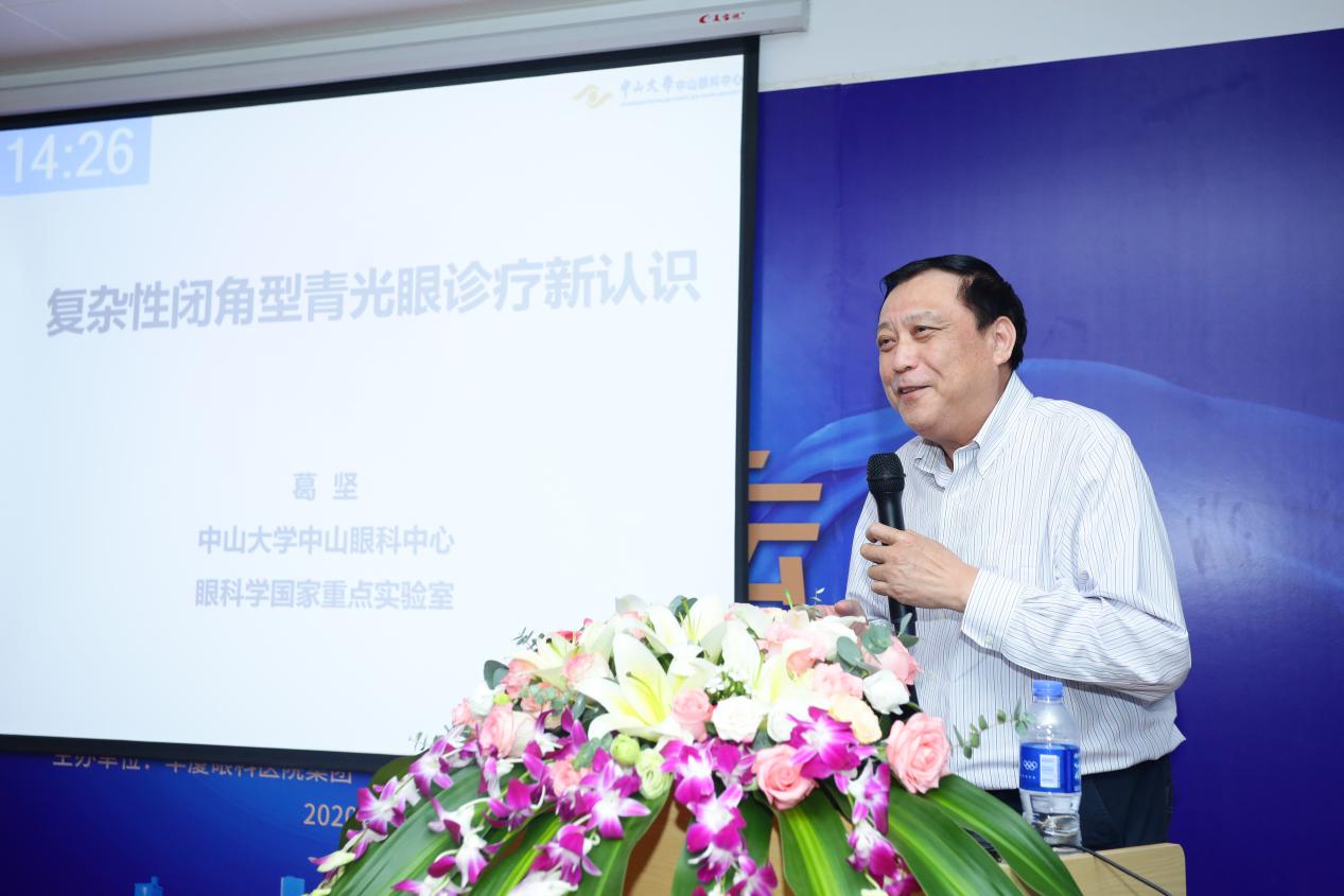 ▲葛堅教授談“復雜性閉角青光眼診療新認識”