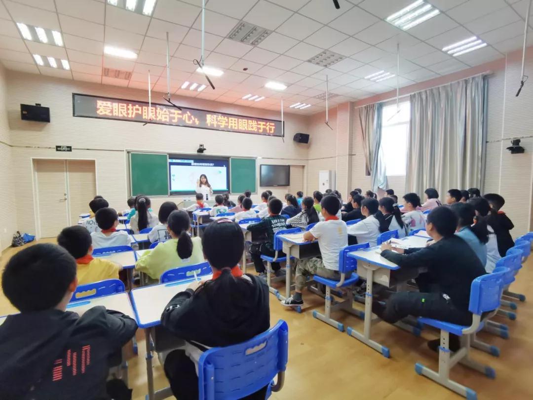 ▲廈門眼科中心斜視與小兒眼科副主任醫(yī)師何歡為小學生進行近視防控科普
