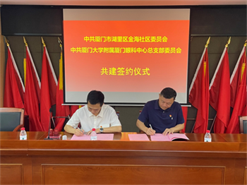 為認(rèn)真貫徹落實(shí)習(xí)近平總書記關(guān)于城市基層黨建的重要指示批示精神,踐行黨的二十大關(guān)于健康事業(yè)和基層保障工作的相關(guān)精神,扎實(shí)推進(jìn)社企聯(lián)動,發(fā)揮“黨建聯(lián)盟”在基層服務(wù)中的引領(lǐng)作用,7月26日上午,廈門大學(xué)附屬廈門眼科中心黨總支攜手湖里區(qū)金海社區(qū)黨委共同舉行《城市基層黨建結(jié)對共建協(xié)議書》簽訂儀式。金山街道金海社區(qū)黨委書記林龍偉、廈門眼科中心黨總支書記劉旭陽、華廈