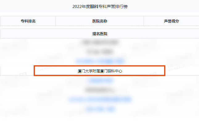 11月25日,由國內(nèi)著名同行專家擔任評審的復(fù)旦版《2022年度中國醫(yī)院綜合排行榜》和復(fù)旦版《2022年度中國醫(yī)院??坡曌u排行榜》在上海市發(fā)布。廈門眼科中心榮獲2022年度眼科??坡曌u排行榜提名,是全福建省唯一上榜的專科醫(yī)院,且已經(jīng)是廈門眼科中心連續(xù)第五年上榜!