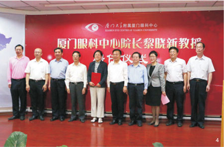 - 聘請(qǐng)黎曉新教授為廈門大學(xué)附屬廈門眼科中心院長(zhǎng)。廈門市常委、組織部長(zhǎng)陳秋雄(現(xiàn)為廈門市委副書記)頒布聘書,廈門大學(xué)黨委書記張彥等領(lǐng)導(dǎo)出席見證。
