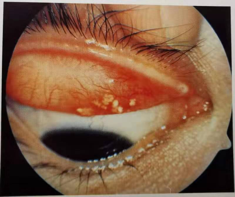 眼結(jié)石,其實(shí)是結(jié)膜發(fā)生慢性炎癥時(shí),結(jié)膜脫落的上皮細(xì)胞、黏液成分和脂肪等成分長(zhǎng)期堆積,從而形成的一顆顆類似于結(jié)石的東西。眼結(jié)石在外觀上是質(zhì)地堅(jiān)硬的黃白色小點(diǎn),我們可以在瞼結(jié)膜上看到這些小點(diǎn)狀的突起,形狀就像碎米粒,有的眼結(jié)石呈散點(diǎn)狀,有的可能比較密集,集結(jié)成群。