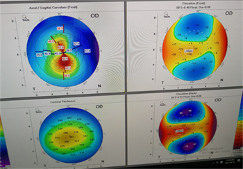 上圖按順時針方向依次為角膜前表面曲率,角膜前表面高度,角膜后表面高度,角膜厚度。